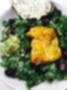 6. Top salad with baked salmon, avocado, hemp hearts, and additional nutritional yeast. I also like to sprinkle the salad with fresh or dried fruit for an extra punch of flavor.